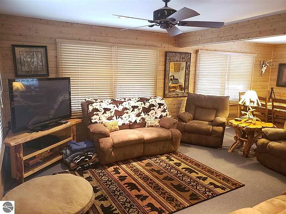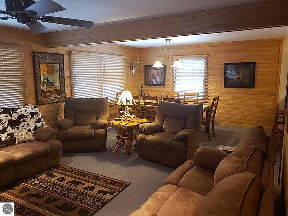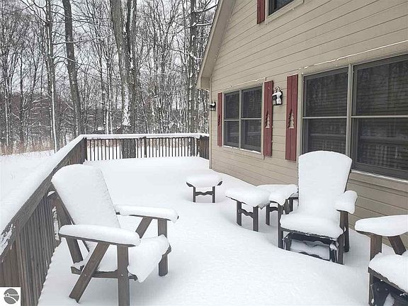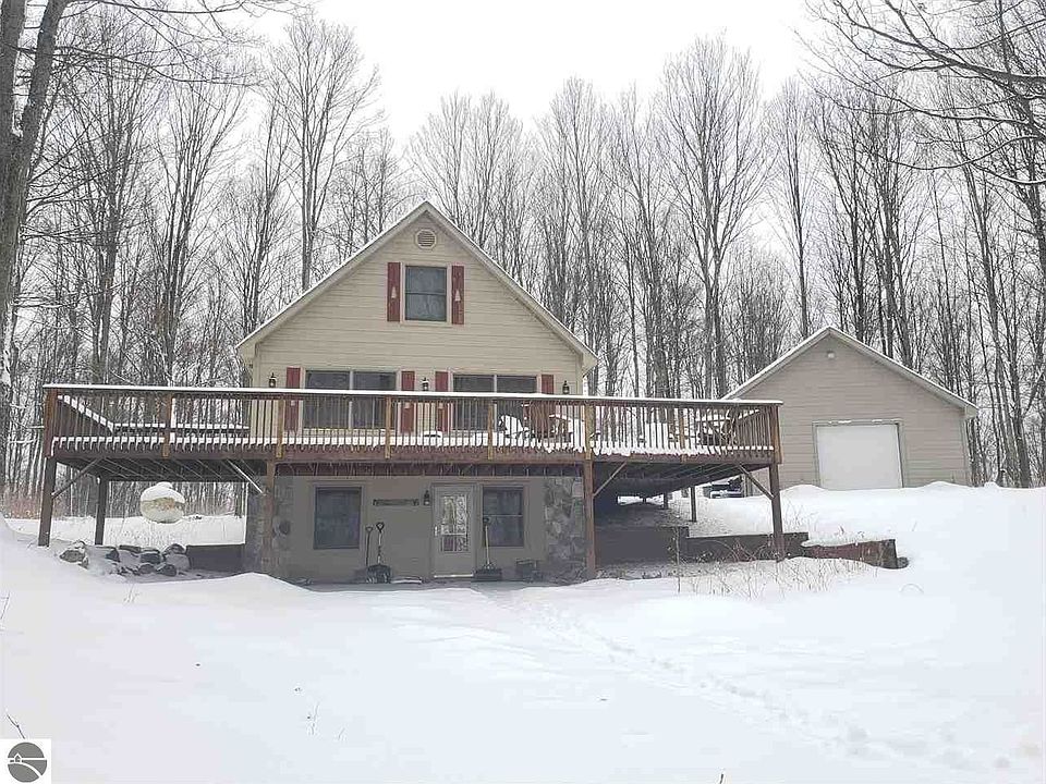 Very well maintained chalet in Caberfae Subdivision. Home boasts 4 beds, 2 baths, partially finished walkout basement, wrap around deck, central air, garage with 2 overhead pass through doors perfect for snowmobiles and toys on almost 1/2 acre treed lot. Perfect Up North getaway for the outdoor enthusiast, either it be skiing, snowmobiling, fishing the Manistee or Pine Rivers, or ORV trails. Federal land just down the road, snowmobile right out your door. This house could easily be a year round home as well, with plenty of elbow room for a growing family.