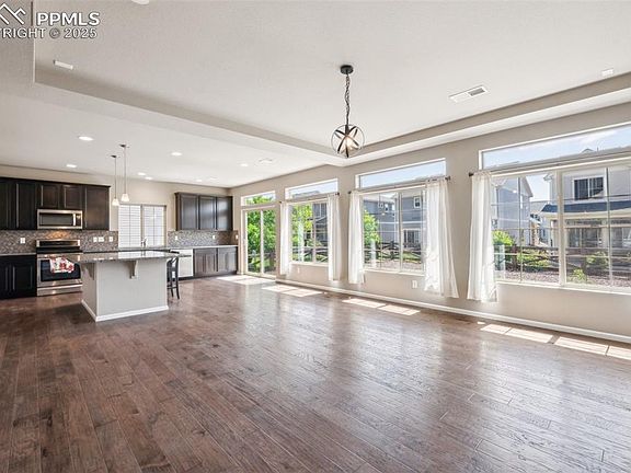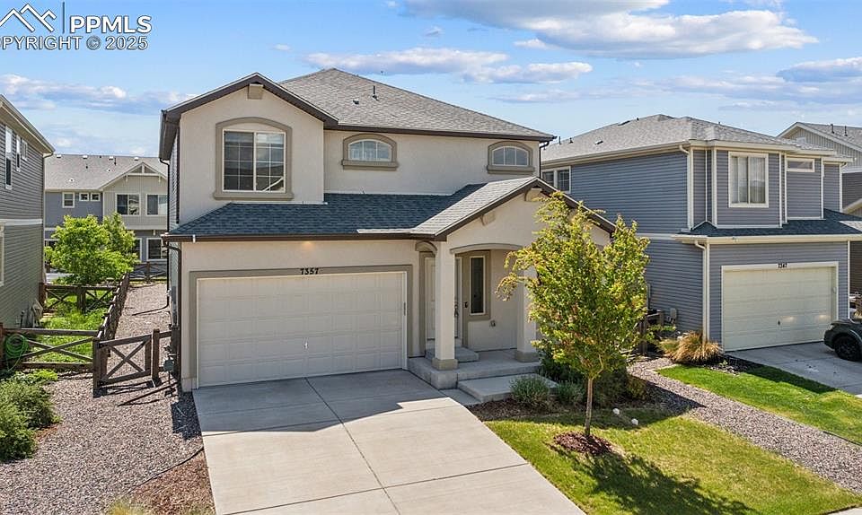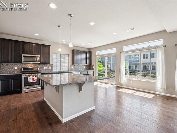 Welcome to Your Dream Home in Banning Lewis Ranch! Nestled in one of Colorado Springs’ most sought-after communities, this stunning 3-bedroom, 3-bathroom residence offers 2,229 square feet of stylish and functional living space designed for both relaxation and entertainment. From the moment you step inside, you’ll be captivated by the warm, open layout and gleaming wood floors that flow seamlessly throughout the main level. The heart of the home is the gourmet kitchen—an entertainer’s dream—featuring a sprawling island with breakfast bar, rich cabinetry, a gas range, and an oversized walk-in pantry. Whether you're hosting gatherings or enjoying quiet evenings, this space effortlessly brings everyone together. Upstairs, you’ll find a spacious loft perfect for a second living area, playroom, or home office. Three generously sized bedrooms, including a luxurious primary suite with dual vanities and a spa-inspired walk-in shower, provide comfortable retreats for the entire household. The large upstairs laundry room adds everyday convenience. This smart home is equipped with a Ring doorbell, MyQ smart garage door system, and a smart thermostat for modern living. The exterior boasts low-maintenance stucco, while the oversized 2-car garage includes built-in cabinets for extra storage. Additional storage is thoughtfully tucked under the stairs and in the attic. As a resident of Banning Lewis Ranch, enjoy exclusive access to resort-style amenities: a vibrant community center, state-of-the-art fitness facility, sparkling pool, beautiful parks, scenic trails, and top-rated schools—all just steps from your front door. Don't miss the opportunity to live in a home and neighborhood that truly have it all!