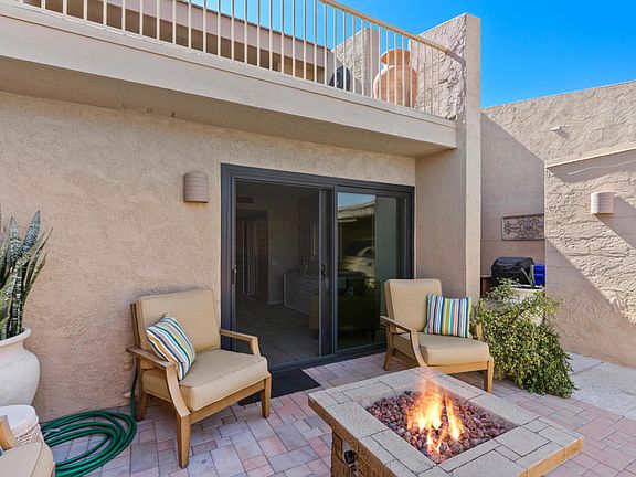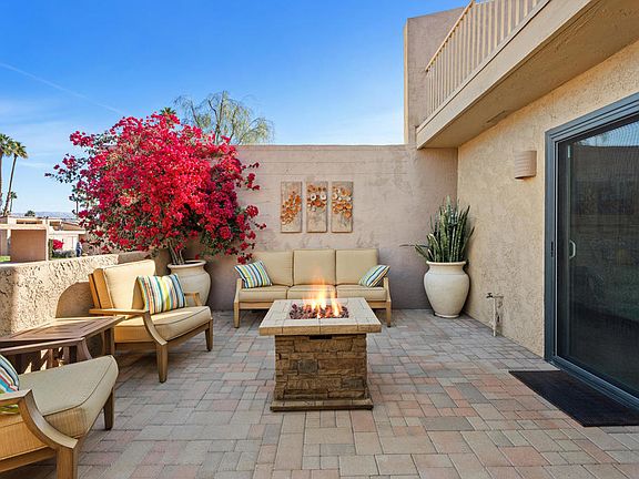 Presenting a spacious and thoughtfully remodeled two story Garden Villa within the esteemed Ironwood Country Club. Move-in ready, remodeled in 2013 and again in 2025, this home is offered turnkey, graciously furnished with everything you need to enjoy the desert lifestyle. The private front courtyard provides a perfect setting to enjoy your morning coffee. Boasting three bedrooms, one conveniently situated on the main floor and two upstairs, each with private baths and picturesque views of the mountains and the pool. There is an area with a desk with stunning views. The main level seamlessly transitions to a spacious patio , offering scenic views of the beautiful landscaped surroundings and pool. Nestled in Ironwood Country Club, residents have the option to explore various membership opportunities through application and sponsorship While membership is not obligatory for homeowners, the Club presents two magnificent 18 hole golf courses, complete with two practice facilities, and a putting practice area adjacent to the clubhouse.