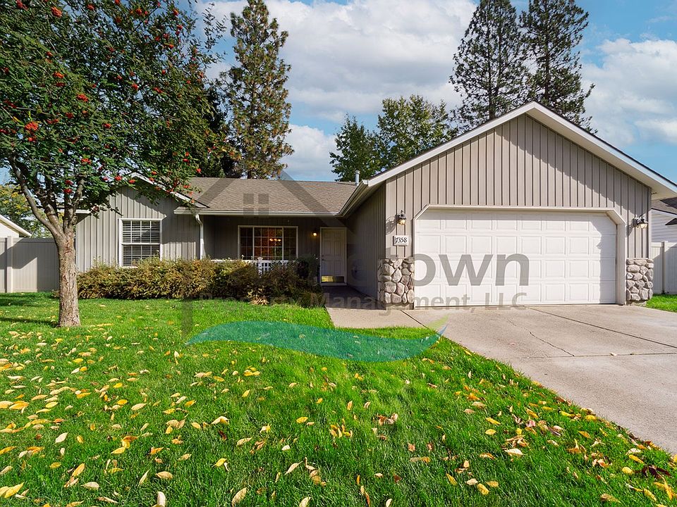 This 2004 home sits in a very popular Coeur d'Alene subdivision called Legacy Place. At 1,392 square feet, this stunning home features three bedrooms, two bathrooms, an attached two-car garage, a fully fenced back yard, and a beautiful grassy green lawn. The front door of this home sits under a covered front porch just large enough for a small set of patio furniture. Upon initial entry into the home, you step right into the home's living room with a vaulted ceiling and a large picture window looking out onto the front yard. This window faces south, inviting a lot of extra natural light into the room. Immediately following the living room is the dining room, which sits next to a sliding glass door and has its own decorative chandelier. The kitchen is adjacent to the dining room. This kitchen starts with a kitchen island with cupboards and a breakfast bar wide enough to accommodate four bar stools. This kitchen comes complete with a large double-door stainless steel refrigerator with an ice maker, a stainless steel gas range and oven, a stainless steel built-in microwave, a dual basin sink with garbage disposal, a stainless steel dishwasher, a large sliding double door pantry, polished granite countertops, and rows of white cabinetry above and below the counters. The entrance into the master bedroom is adjacent to the living room. This extra large bedroom comes with its own bathroom and a walk-in closet. The master bathroom features a wide dual sink vanity with cupboards, a linen closet, a shower and tub, and a handheld shower massager. A foyer on the opposite side of the living room leads to the two guest bedrooms, to the guest bathroom, and to a linen closet. Guest bedroom number one has a large picture window looking out onto the front yard. Guest bedroom number two looks out onto the back yard. Each guest bedroom has its own sliding double-door closet. The guest bathroom is a full bath with a tub and shower, a medicine cabinet, and a sink vanity with cupboards. The laundry room is accessed via the master bedroom hallway. This laundry room features a row of cupboards and washer and dryer hookups available to tenants. There is an entrance into the home inside the garage. This entrance takes you right into the laundry room. The sliding glass door in the dining room leads to a concrete patio and to the fully enclosed back yard. This yard is an ideal location for private family gatherings and for children to play in. There is also an outdoor storage shed in the back yard available to tenants. The home has central air conditioning, while heat is provided by a forced air gas furnace. Floors throughout the home are luxury vinyl plank flooring. The master bedroom and guest bedroom number two are fully carpeted. All windows in the home come with blinds installed. The lawn is watered with an automatic sprinkler system. CCRs and a Homeowner's Association are in effect to protect the overall appearance and curb appeal of this subdivision. Landscaping is provided by the owner and is included in your rent. The nearest north-south thoroughfare is Ramsey Road approximately three blocks west of the home. Prairie Avenue takes you all the way into Post Falls going west, and over to Highway 95 going east. To see a walk-through video of the home, visit the following URL: No smoking. Pets will be considered on a case by case basis and will require owner approval. Application Fee: $40.00 Security Deposit: $2,400.00 Pet Deposit: $400.00 per pet Monthly Pet Rent: $35.00 per pet *Property information is deemed reliable but is not guaranteed.*