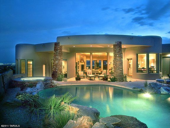 For more information on this property, contact the Listing Agent, Marilyn Joyce at (520) 906-8731 or mjoyce@LongRealty.com. A dramatic, elegant contemporary perched high with sweeping city and mountain views in Pima Canyon Estates, a luxury gated community in the Foothills. Extraordinary design features created by a professional interior designer:fabulous flagstone floors complimented by areas of travertine;luscious marble and granite;unique designer ceiling fans;dramatic colors/materials/ fixtures. A gourmet kitchen with Dacor and Sub-Zero appliances. A spacious game/rec room, with a wet bar and wine chiller. A spacious Master Suite,w/fireplace, exercise room,and sitting area. A great office/study w/built-ins. Floor to ceiling windows in most rooms create a wonderful inside/outside feeling - and frame sweeping views! A very private rear patio w/pebbletech pool/spa, fireplace, built in BBQ
