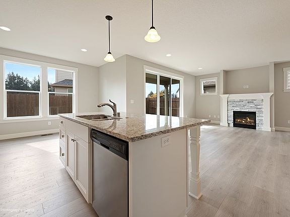 This open concept floor plan features a gas fireplace in the living room, large bedrooms upstairs and comes landscaped.