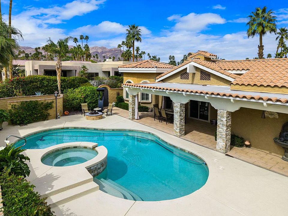 Prime South Palm Desert LocationNestled in the exclusive Ironwood Heights Gated Community of Ironwood Country Club! This stunning residence sits on an elevated lot, offering majestic mountain views with an indoor-outdoor lifestyle the Desert is famous for.Expansive Living Space;enjoy 2,838 sq ft of well-designed open floor plan featuring 3 bedrooms, 3 baths, and a versatile den perfect for a home office complete with a Murphy bed.Gourmet Kitchen; the heart of the home features a beautiful kitchen with granite slab countertops, a spacious island, custom cabinetry, double ovens, and a 5-burner range top--ideal for culinary enthusiasts.Elegant dining & living areas; formal dining room enhanced by a fabulous chandelier flows into a spacious living room that boasts a wet bar, gas fireplace, and sliders that open onto the patio.Luxurious primary suite includes; dual vanities (with an additional makeup vanity), a soaking tub, walk-in shower, and a custom closet organizer for added convenience.Guest Suite; designed with privacy in mind, the guest suite offers its own bathroom and private patio access.Interior Finishes; enjoy refined details such as travertine flooring, skylights, wood beam ceilings, plantation shutters, surround sound system and more.Outdoor living; the fabulous front courtyard exemplifies desert living with features including; pebble tech pool/spa with a cascading waterfall and gas fire pit. Multiple seating areas surrounded by lush landscaping for ultimate relaxation. Two car garage, also accommodates a golf cart with its own door access and there is a separate carport for an extra vehicle.Prime location! Golf & RecreationMembership available at the acclaimed Ironwood Country Club, which offers two 18- hole golf courses, state of the art fitness center, tennis and pickleball courts and a beautiful Tuscan style Clubhouse!Dining & Entertainment; a short drive brings you to the vibrant El Paseo, home to exceptional shopping and an array of restaurants.This property offers amazing mountain views with indoor/outdoor living, to create the ultimate desert lifestyle experience!