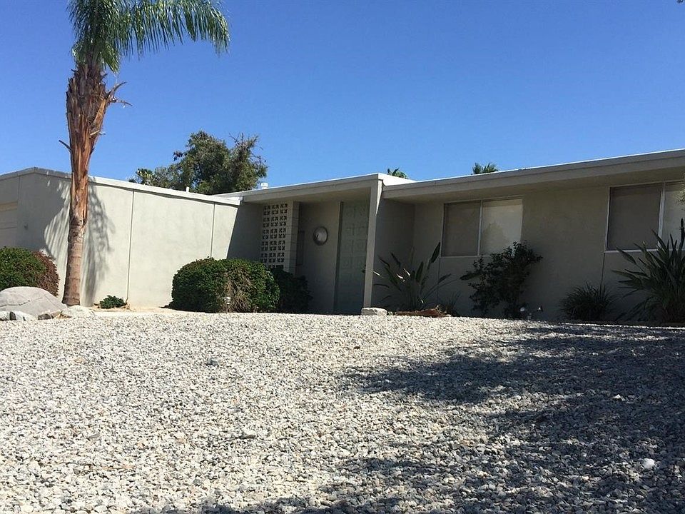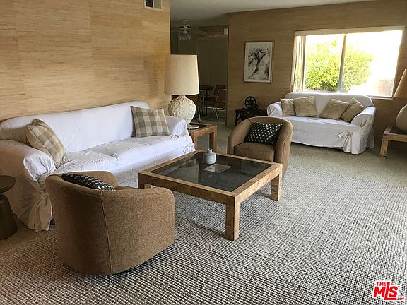 Mid-Century Modern located in the highly desirable Silver Spur Ranch Neighborhood. This property sits on a hill with valley and mountain views. Three bedroom, two bathrooms. Large yard with spacious pool surrounded by fruit trees. Move In ready, just bring your tooth brush. Fully furnished. Close to El Paseo, shops, restaurants and the Living Desert.