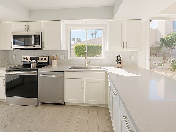 Experience modern desert living in this fully renovated retreat inside Ironwood Country Club. Minutes from El Paseo, this 2-bedroom home offers sleek design, sunset views, and resort-style amenities, including access to the heated pool and spa. Perfect for extended stays or weekend escapes.