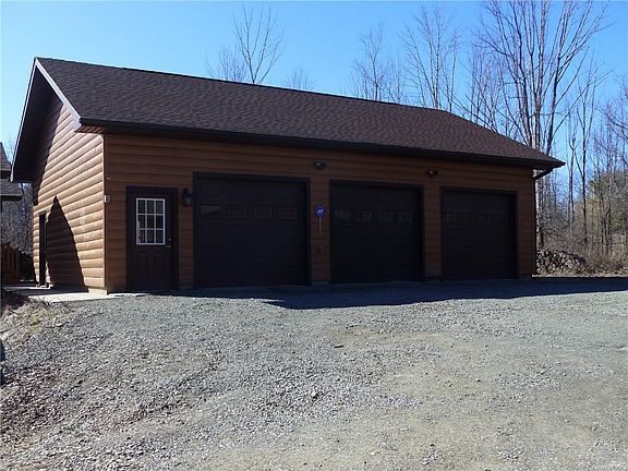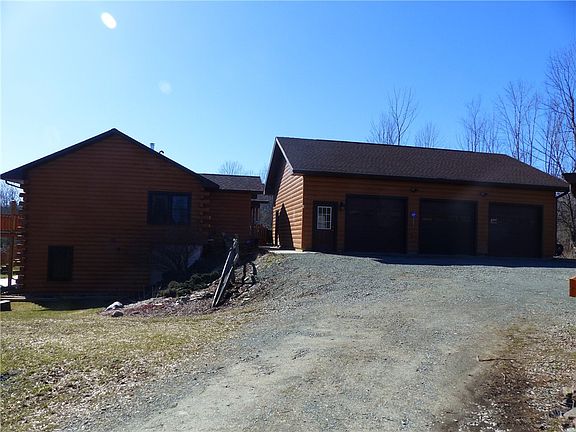 If you have been looking for a move in ready Log Home in a peaceful setting you have found it here at 7359 Chrisler Rd. The current owners have put together a Log Home paradise meticulously hand crafted and maintained over the years complete with a detached 3 car garage, a 2 bay work shop, machinery storage shed, garden shed and a chicken coop on 10+ acres. To complete the outdoor space you will find a large, low maintenance deck constructed in 2021 over looking a pristine 14’ pond that is stocked with grass carp for weed control. You are going to love the custom wood finishes throughout the home with 3 generously sized bedrooms, and the beautiful eat-in kitchen with 1st floor laundry and a basement that has been finished with an office area, sitting room, kitchen area, full bath, storage and indoor work shop area that walks out to a beautiful patio area over looking your pond. You won’t appreciate this home until you see it for yourself. Paradise! Taxes are based on current assessment New taxes will be determined by town assessor based on new acreage and assessment