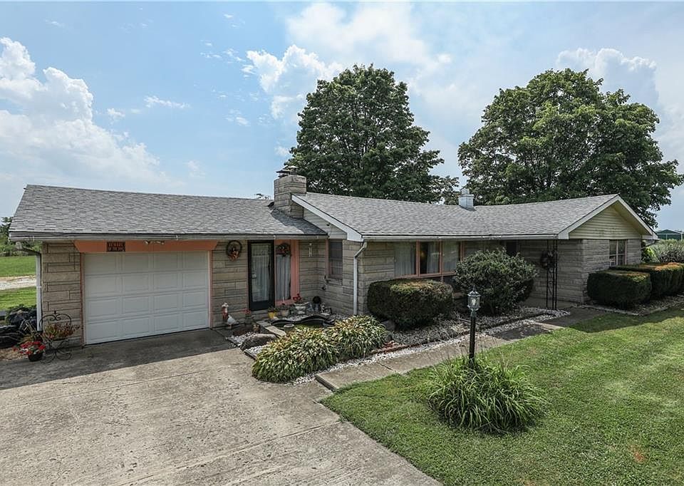 A little vision and some TLC and this rambling Bedford stone ranch home will be your jewel...homeowners have lived there 50+ years and have well-maintained the home. Over 2000 square feet, 3 bedrooms, 2 full baths, sun room and 1.75 acres close to I-65. New roof & furnace, updated septic, whole house filtration, new pex plumbing, wood burning fireplace. Detached two car garage and nice 2 stall barn with separate storage area. Back acre once fenced for horses. Come home to the country!
