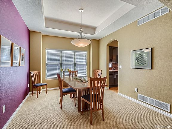 Fabulous updated ranch floorplan in coveted Songbird neighborhood with one-level living on quiet cul-de-sac. Entryway features side light and transom window bringing in natural light enhancing the barrel-vaulted ceiling with ambient lighting and art niche. Wood floors extend through the entry, kitchen, eating space, living room and hallways. Vaulted and 9' ceilings throughout the main level. Updated kitchen features granite counter tops, tile backsplash, SS appliances, double oven, walk-in pantry, island with pendant lights and seating plus additional eating space. Formal dining room with coffered ceiling extends from kitchen to expand the area for entertaining with plenty of room for table of ten plus hutch or buffet. Large great room is vaulted with ceiling fan, generous natural light, gas fireplace and easy access to back patio space which features a pergola, retractable awning and garden area. Primary bedroom boasts coffered ceiling, generous natural light, walk-in closet with custom storage system and 5-piece updated master bath with European glass shower enclosure. Second main-level bedroom with en-suite full bath. Main level office with glass double door entry plus guest half bath and main level laundry room. Fully finished basement with large recreation room featuring two large windows for natural light, gas fireplace, recessed lighting, dry bar and storage closet with shelving. Two additional bedrooms with egress windows plus large full bath. Spacious utility room with storage space. 2-car garage is drywalled and features opener and keypad entry. Covenant controlled and gated community with walking paths and park-like areas throughout. Close proximity to major commuting routes and recreational areas, schools, shopping and dining.