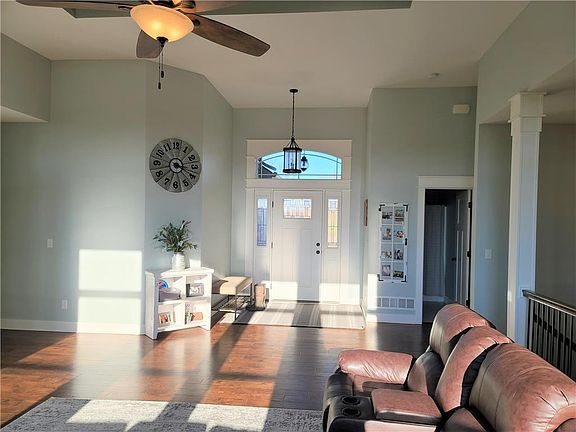 20 Acres and a Gorgeous reverse 1.5 story w/open floorplan & nice extras! Dramatic living room with a unique wood ceiling. Custom kitchen w/walk- in pantry, nice island and lots of room to entertain. The master features a wall of windows, access to the deck, an awesome bath w/oversized walk-in shower, dbl vanities & a spacious closet leading directly to the laundry room. Lg 2nd bedroom/office & full bath also on the main. Walk out basement w/family room, 2 more bedrooms/1 full bath, 2 storage areas + a safe room.