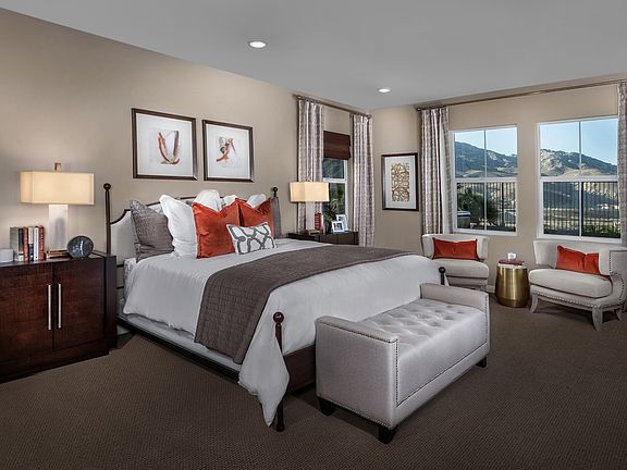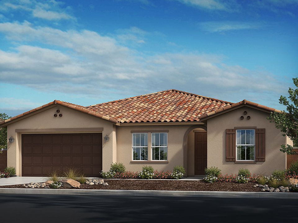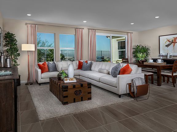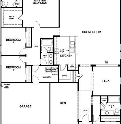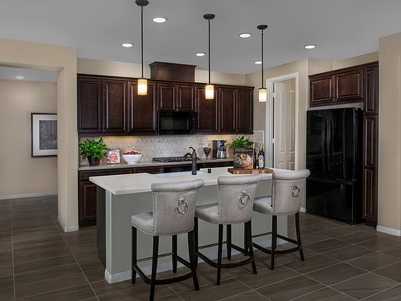 This single-story home features a 3-car garage and a 5kW solar power system for lease. Moving inside, you'll find an open concept floor plan with the kitchen overlooking the expansive great room. The kitchen offers quartz countertops, maple cabinets in Java, extra lower cabinets, an island, and Whirlpool® appliances, including a gas double oven range and dishwasher. The flex room is converted to bedroom 5. The spacious master suite features a walk-in closet and a fiberglass separate tub and shower.