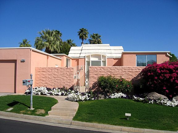 Great reduction!!! Located inf Marrakesh Country Club this is the largest D floor plan, three bedroom three bath boasting 2427 sq.ft. Plantation shutters, bright unit, 10 ft. ceilings, large bedrooms and amazing oversized walk in closets and fireplace in the living room. This home is conveniently located close to community pool. It features a patio with private setting on the green belt and large front courtyard. It also offers a two car attached garage with a golf cart space to include the golf cart... This home is the lowest priced three bedroom, a great opportunity to make it your own!... Marrakesh is well know for its very active lifestyle. It has an 18 hole executive golf course, tennis, a state of the art new exercise facility with top of the line equipment and a club house with a fine restaurant. It is centrally located in the heart of south Palm Desert close to the famous El Paseo with world class shopping, art galleries and restaurants.