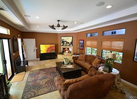 STUNNING TUSCAN INSPIRED ESTATE FEATURING 4/5 BEDROOMS, 4 BATHS, GREAT ROOM AND LOFT AREA. THIS HOME OFFERS OVER 3300 SQUARE FEET OF LIVING SPACE. THE MAIN LEVEL INCLUDES A SPACIOUS GUEST ROOM AND SOPHISTICATED OFFICE WITH FRENCH DOORS OVERLOOKING POOL. WHETHER HOSTING FOR MANY OR COOKING FOR TWO, THE BEAUTIFUL CHEF'S GOURMET KITCHEN COMES FULLY EQUIPPED WITH TOP OF THE LINE APPLIANCES, OVERLOOKING A PALATIAL GREAT ROOM AND WOOD BURNING FIREPLACE. ON THE UPPER LEVEL THERE IS A TASTEFULLY APPOINTED MASTER SUITE W/COZY FIREPLACE AND FRENCH DOORS OVERLOOKING YOUR PRIVATE VERANDA. AN ELEGANT MASTER SPA BATH FEATURES DUAL VANITIES, CUSTOM WALK IN CLOSETS, A JACUZZI TUB AND SUN-LIT SHOWER IN A MOSAIC OF TRAVERTINE AND GRANITE. IN ADDITION THIS LEVEL FEATURES TWO GENEROUS BEDROOM SUITES & LOFT WITH WALL TO WALL BOOKCASES. EXTERIOR SANTA BARBARA PLASTER FINISH AND LARGE YARD WITH POOL AND POSSIBLE RV PARKING, 2 CAR GARAGE AND DRIVEWAY WHICH WILL ACCOMMODATE THREE CARS.