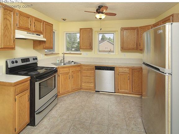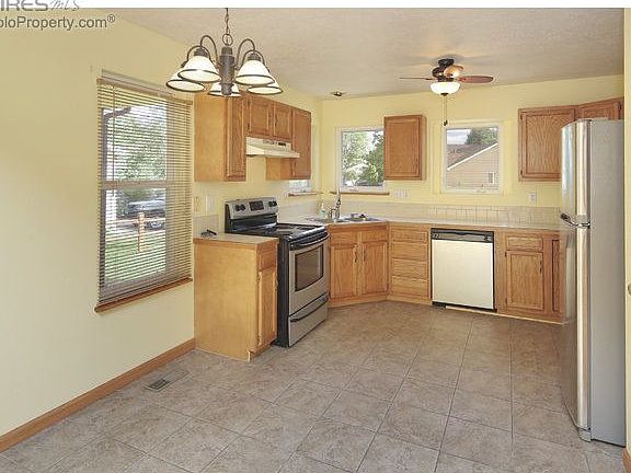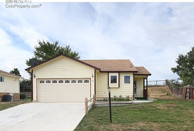 Great sweat equity opportunity with this 3 bd 3 ba ranch style home w/ 2 car garage. New furnace, central A/C, carpet & stamped concrete back patio/walkways! This home offers a big eat in kitchen, vaulted ceilings & full mstr bath. Full bsmt where none of the finish work is complete but has a useable 4th bdrm & 3rd bath. 8400 sq ft fenced lot backs to farmland w/ views of Longs Peak. Yard needs new landscaping. No HOA, RV parking allowed. This home is being sold as is.