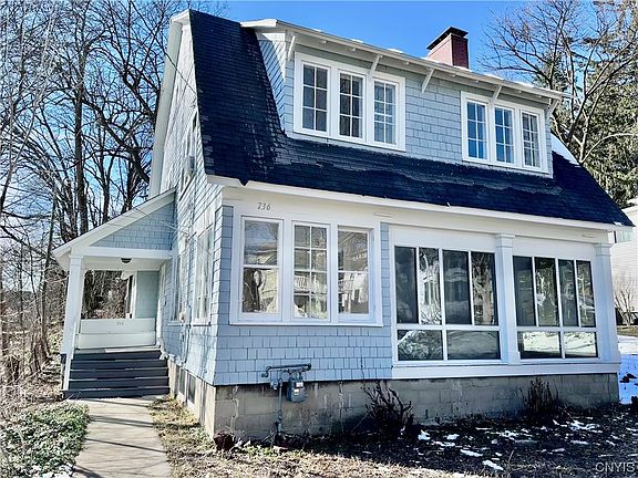 Welcome to 736 Ackerman Avenue in the Syracuse University Hill area! This home has 2,476 SF of living space with 5 bedrooms and 3 bathrooms, two porches (an enclosed front porch and an open side porch), a lovely, bright sunroom at the back of the home and a 2-car detached garage. Recent updates include complete exterior and interior painting and refinished hardwood floors on the first level. Walking into the home through the side-covered porch, you enter a foyer area with coat closet then to the impressive spacious living room with fireplace, a formal dining room, a kitchen with a pantry, a half bathroom, an office area, an enclosed front porch, and a sunroom. Upstairs to the second floor are 4 large bedrooms with ample closet space and 2 full bathrooms. The third floor offers an additional bedroom and two other rooms for storage. The basement has a side entrance along the driveway and a recently finished room that can be set up as an office or playroom. There is plenty of parking either in garage, the driveway or along the street. The backyard is private, park-like. Close to Syracuse University and Syracuse area hospitals. Location, location, location! Schedule your showing today!