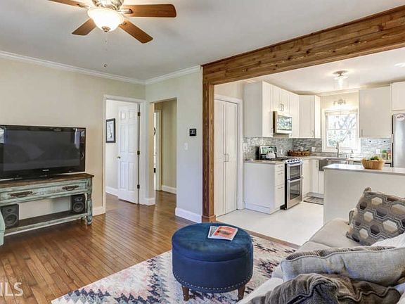 Beautifully Renovated Cottage! An inviting Stone Walkway welcomes you into an Open Family Room with Hardwood Floors and Exposed Wood Beams. Stainless Steel Appliances shine in the Bright, Heart-of-Home Kitchen with Granite Countertops, Island, and Custom Tile Backsplash. Gather and entertain with ease in the sun-soaked Dining Room with Step-Out Deck Access. French Doors open to a Dedicated Home Office with conveniently tucked away Laundry. Unwind in the Oversized Owner's Suite with Ensuite Bathroom and Gorgeous Picture Window facing the Private, Tree-Lined Backyard with Garden Shed. A Second, Spacious Bedroom completes this idyllic home. STEPS from The District at Howell Mill with dozens of Shops and Restaurants. Minutes from Seven Local Breweries including Monday Night Brewing and Urban Tree Cidery. Easy I-75 Access to all of Intown Atlanta.