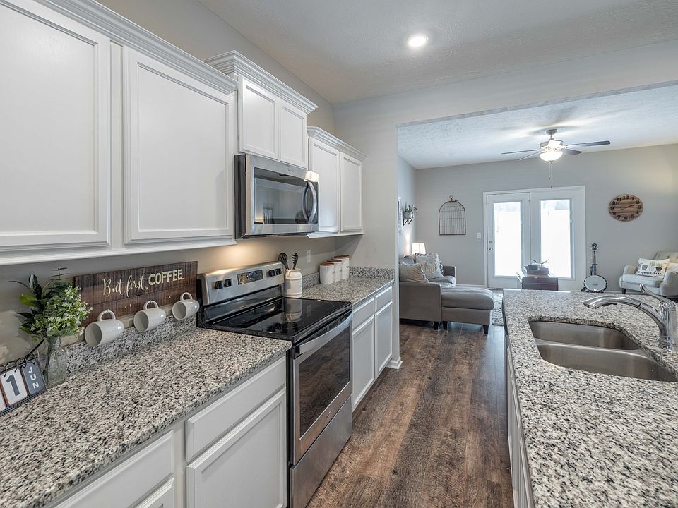 Stunning town home built in 2019 that will check all your boxes with a charming Front Porch, Oversized Island, Granite throughout, White cabinets, Luxury Distressed flooring, Double Vanities int he Master Bathroom with large 5 ft shower. Perfect!