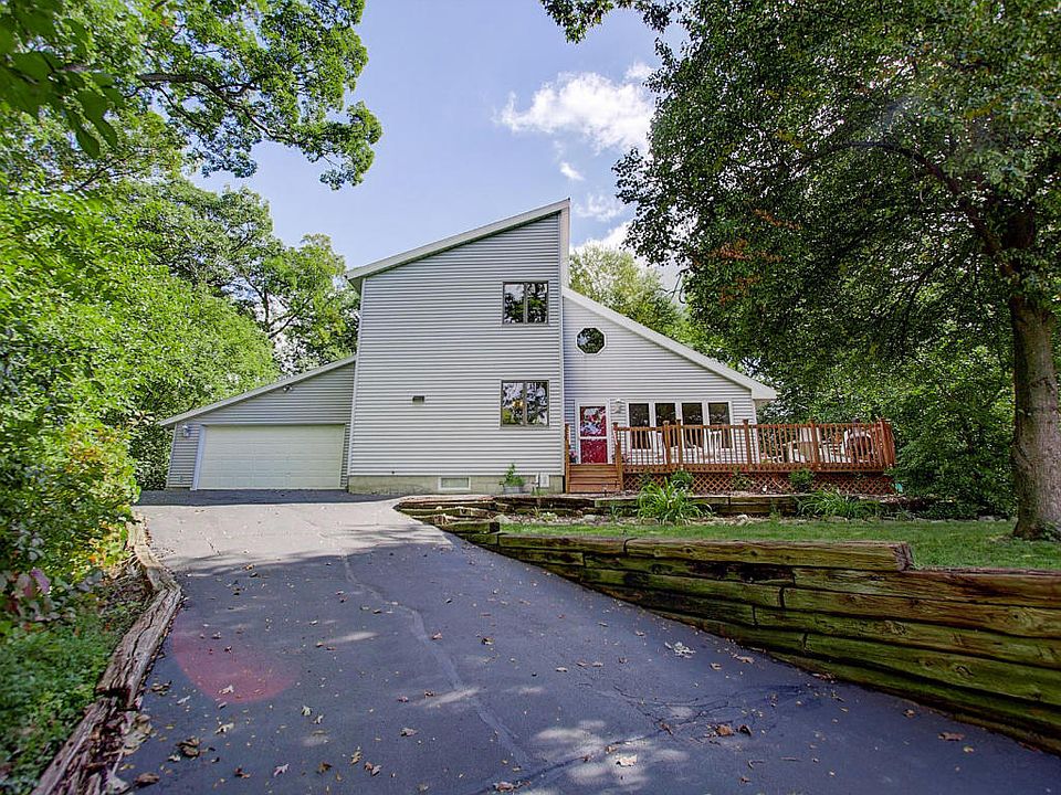 You'll love the updates of this two story Hartland contemporary. Enter the open concept great room with new dark wood floors, white fireplace vaulted ceiling and open balcony. Kitchen with same dark wood floors and stainless appliances, and loads of counter space. Large bedrooms and updated tile baths. All this located on one of the highest lots in Hartridge with awesome sunset views. Best yet is the wooded privacy in the back yard with great side deck. What an opportunity in a great location. Only a job change out of state brings this exciting new listing to the market. Priced to sell!