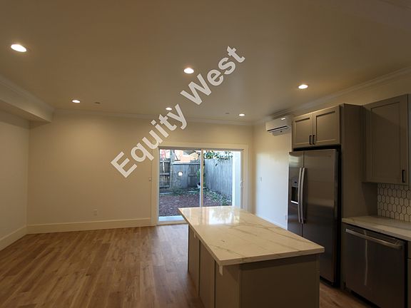 This is a single family home with an attached in law unit below. This listing is for in law unit Welcome to this newly built home conveniently located 4 blocks away from West Oakland BART station. With trains every few minutes, you never have to deal with traffic going into SF. Unless you need to... This home offers tall 9ft ceilings, an open layout, stainless steel appliances, quartz countertops, kitchen island, and is spacious enough to even have guest over for dinner. The in-unit laundry, individually controlled heating/AC makes your life certainly more comfortable and convenient. The laminate flooring throughout makes it easier to clean. Ample spacing for parking the street. The home all electric and with solar soon to be installed, you should be able to save some money on unities. Come check it out! Tenant pays for water through submeter company Trash is about $60/month depending on size of the trash can. House is all electric and solar to be installed. Solar electric rate is usually lower than PG&E rate First month and deposit required before move in