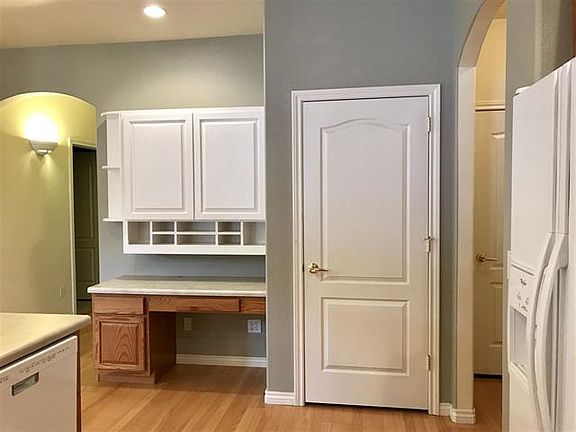Leave the exterior maintenance to the HOA and enjoy this darling town home in the desirable Fountain Greens Subdivision. This home features an open concept with a split bedroom design and laminate flooring throughout the living area, kitchen, and hallways. Enjoy the gas fireplace in the living room, the built in desk area in the kitchen, additional cabinets and shelving in the laundry room and built in shelving in the oversized two car garage. The park area is adjacent to the back patio. All appliances included, central air conditioning. This home is vacant and easy to show.
