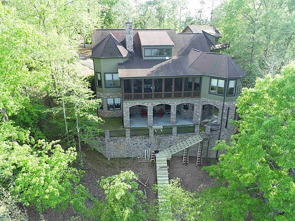 Beautiful 5 bedroom /5.5 bath home on the south end of Lake Wedowee in Creek Crossing. This home is amazing with open floor plan and plenty of room for family and guests. On the main level you have the master bedroom suite with awesome view of the lake, large great room with stone fireplace and cathedral ceilings, chef's kitchen with double ovens and large island, a large dining room, and a cozy keeping room over looking the lake! You will enjoy the screened in porch across the whole back of the house looking towards the lake. Down stairs you have 3 bedrooms, two of them that over look the lake, 3 full baths, another great room, and second kitchen with large island. There is a three car garage on the street level with a large bunk room over it with a full bath. The lot has a gorgeous eastern view of big water, 132 feet of year round water, concrete seawall, a floating dock with boat lift, sitting area and 2 jet ports. This is an amazing property on Lake Wedowee.
