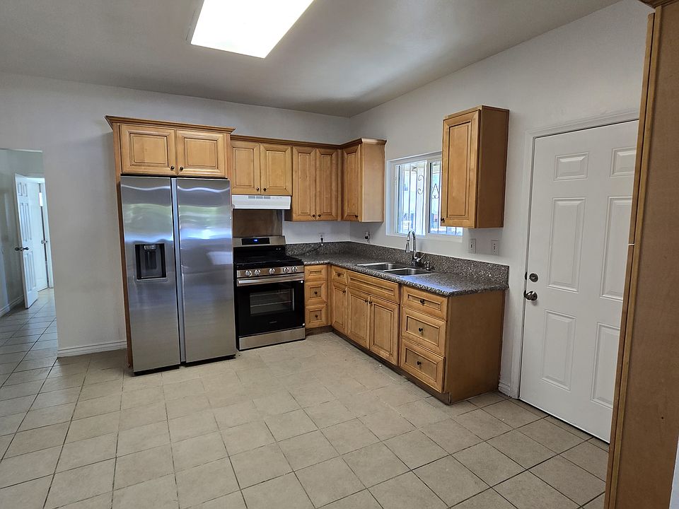 A spacious 3 bed 2 bath house withbplenty of parking in Convenient Location- easy access freeways- 10, 110, 60, 101, Close to LA Downtown & School, wrought iron gates & Secured Home at ground floor in Duplex, new paint and cleaned, Tile Floor, dual pane windows, 24 hr surveillance cameras that can be connected to your TV, all LED lights, newly supplied Stove and Refrigerator, washer & dryer hook up in utility room, 3-4 car parking spaces includes 1ea Covered Parking, Paved Yards, Security Fence and Gates! Must see!