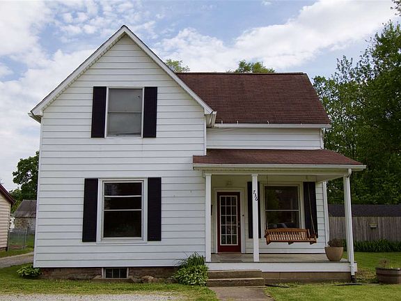 Relax on your front porch at this 3 bedroom, 1 bath home in the heart of Warsaw. Main floor first bedroom and main floor laundry. Spacious living room and dining room. Kitchen with some updates. Hardwood flooring in living room and upper level. The upper level has 2 bedrooms and a huge walk in closet. Nice loft area for an office or den. Enclosed back yard with an over sized 1 car garage.