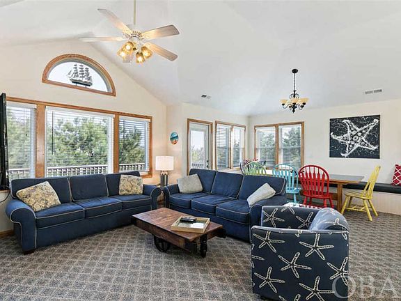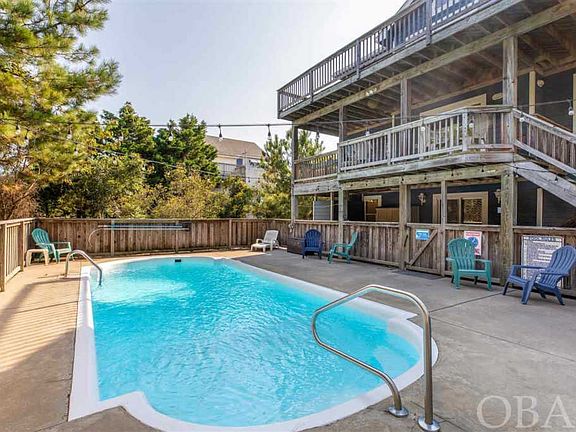 A great Corolla home, a short walk to the beach, with private heated pool, and fantastic income. Multiple living areas make this home well-suited for extended family or families, or for an income producing vacation rental. Built in 2003, this home has 6 bedrooms and 4 bathrooms. The ground level has a game room with pool table, 2 bedrooms and full bath. The game room has sliders that open to the backyard pool area, with large heated in-ground pool, cafe lights, outdoor shower and covered storage. The mid-level has an additional 3 bedrooms and 2 baths (including one master bedroom with master bath), plus a sitting room with tv, mini fridge and cabinets for storage. There is a large covered deck with a hot tub off of this level, that has steps down to the pool area. The top level has it's own master bedroom and bathroom, and the main living areas including an open concept living room, kitchen, and two spaces for dining. The cathedral ceilings allow in plenty of natural light, so do the ample windows and sliders that open to the top level porch that runs the length of the home. Mature trees on two sides of the lot give it nice privacy. The home has had multiple upgrades and improvements, including NEW ROOF and exterior/interior paint in 2017, new HVAC in 2016, new dishwasher in 2018, new hot water heater 2017, new fridge and microwave in 2015. The pathway to the beach access is right beside the home! $52,075 gross income in 2020! Already over $47k on the books for 2021.