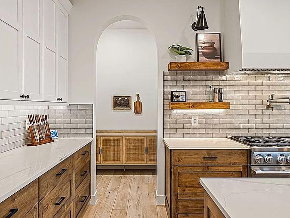 The home features an oversized 2 car garage + an attached boat garage that is 31' deep with a 12' tall door. Garage is temperature controlled. The turf backyard includes a putting green and a sport pool with a tanning shelf, XL capacity hot tub, power cover, waterfalls, fire feature, heater, automatic chlorinator, and smart controls. Enjoy a spacious covered patio with an outdoor integrated speaker system + an underground subwoofer. Beautiful views of the red cliffs and Arizona mountains from the backyard.