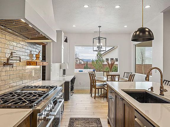 Beautiful custom home in the Homesteads at Stucki Farms. This 4 bedroom, 3 bath house with a POOL is loaded with luxurious interior finishings, including: 8' doors, 10' ceiling, vaulted great room & entry, multi-panel sliding door, huge picture frame windows, tile floors, 48'' LG Signature dual-fuel range w/steam oven, spacious kitchen with a walk-in pantry, large island, tile showers, and a beautiful stone fireplace to name a few. Built by Slate Ridge Custom Homes.