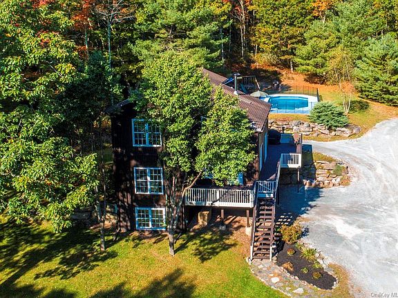 Want privacy? Look no further then this wonderful Contemporary style home on 5+ wooded acres bordering 100's of acres State lands! A Hunters paradise w/ wildlife galore! This spacious home has just received a fresh new coat of paint inside & out! There is room for the whole family & visitors too at this charming country home! Home features LR w/ wood stove & soaring cathedral ceiling, huge kitchen/dining area w/ all appliances & center island. Master bedroom w/ full bath w/ jetted tub, laundry area & 1/2 bath on main level. 2nd level offers 3 large bedrooms & full bath. Finished lower level offers "In-law suite" w/ separate entrance, kitchen, sitting area, bedroom & bath. Home also offers heated built in pool, automatic generator, 2 car garage, wrap around deck, BBQ grill, cell service, internet & more! Just a mile or so to the Mongaup Reservoir for kayaking & Eagle watching & only minutes from Forestburgh, Monticello & all the amenities. Call Today!