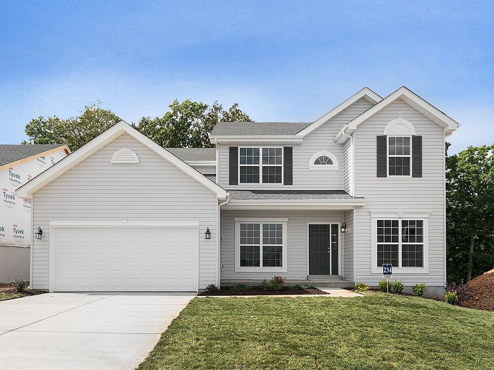This Sequoia Two Story 4BR 2.5BA home will be move in ready late Summer. Perfect for entertaining, the kitchen features large square island with breakfast bar, stainless steel GE appliances, and white 42 inch wall cabinets! Window wall in family room. Formal living room and dining room, plus powder room and laundry on main level. Upstairs is the master suite featuring massive walk-in closet, separate shower and corner tub with large window, double sink vanity, plus three additional bedrooms and a hall bathroom. 6ft windows on main floor, upgraded wood laminate flooring, and more! The lower level includes a ¾ bath rough-in for future finish. Fox Creek is a beautiful new construction community just minutes from Gravois Bluffs. Enjoy peace of mind with McBride Homes' 10 year builders warranty and incredible customer service! Similar Home Photos Shown.
