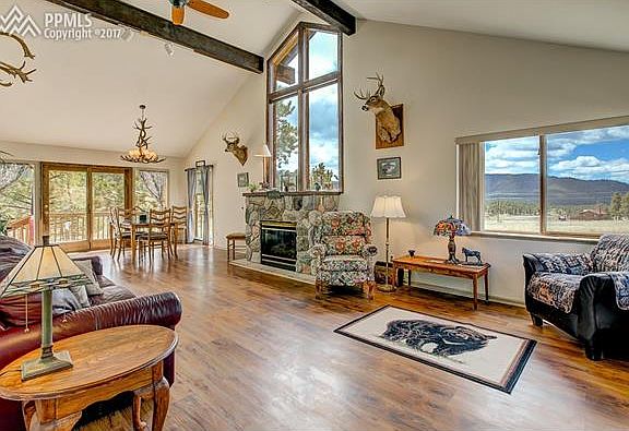 Enjoy the 360 degree views from the wrap around deck of this passive solar, 1600 square foot, 3 bedroom, 2 bath, 2 car garage mountain cabin. Remodeled in 2015 & 16 with new paint & hardwood floors, curtains and blinds, lighting, washer and dryer, water heater and guttering. Downstairs is the open concept living, kitchen, dining, master suite, bedroom 2 and main bath. Upstairs is bedroom 3. Could be your office or bonus room. Close to Cripple Creek for shopping, dining and recreation.