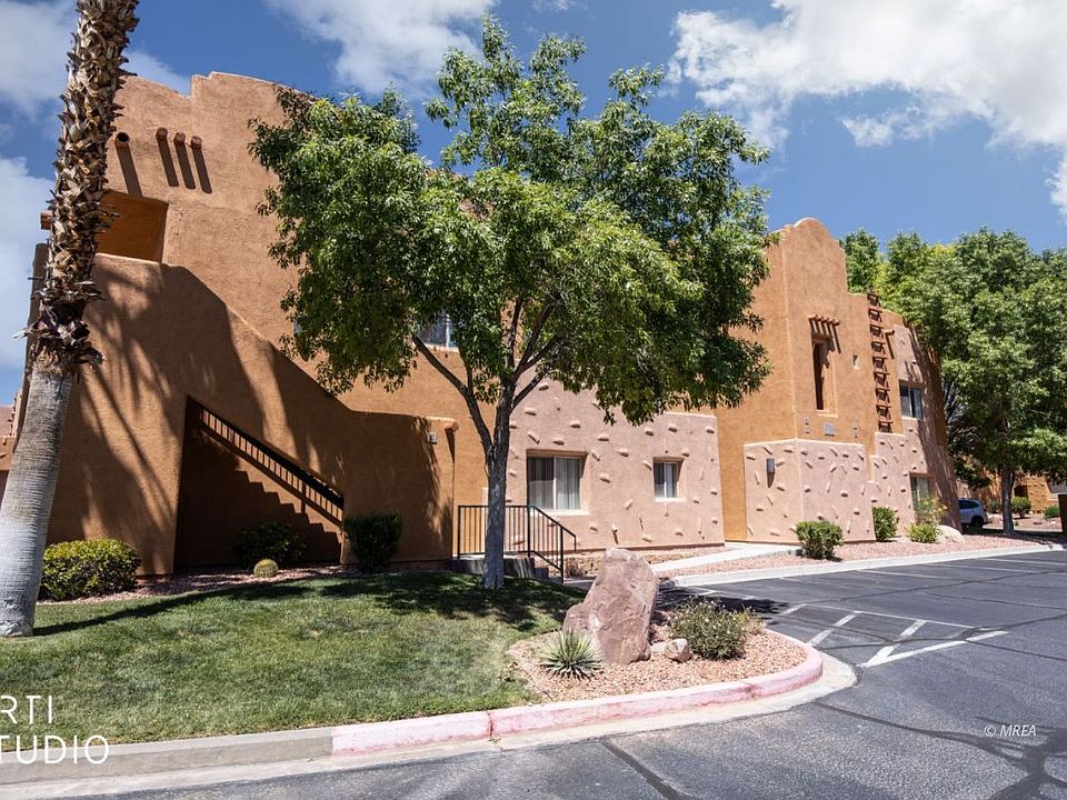 Welcome to 736 Hardy Way Unit C in the beautiful Enchantment Community. If you are looking for a condo, this is the one! This Large condo has two covered balconies, one car garage and beautiful views of the mountains, golf course. Get up early to enjoy an amazing sunrise from your own private balcony. This spacious 1328 sq ft condo is located in a gorgeous setting that is surrounded by the Oasis Golf Course. This upstairs condo offers privacy, plenty of parking, two awesome patios and lush green surroundings. This popular floor plan offers duel master suites located at opposite sides with each having great patio access. A large great room opens to the dining area and kitchen. Duel sliders give access to separate outdoor spaces and a large eating bar provides additional counter space in the kitchen. Each bedroom has its own en-suite and walk in closet. The washer and dryer are included and are conveniently located inside the unit. Within in the water heater, garbage disposal, dishwasher, refrigerator, microwave and guest bathroom toilet have been replaced. Residents enjoy a private swimming pool/spa, in addition to membership to the Mesquite Vistas Country Club. Must See!