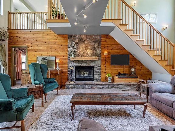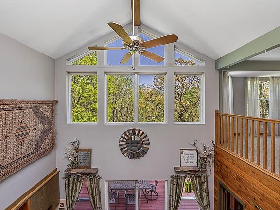 Fall in love! Unique farm style 1 1/2 story on 7 acres w/city water & sewer. 5 Bed, 3.5 BA & Loft/Bonus Rm. Finished W/O basement. 2 story Great Room with tons of windows w/remote blinds, open oak spindled staircase, cedar accents & beautiful stone see thru F.P. to Master BDR. Kitchen w/farm style Amish cabinets w/glass corner cabinet. Granite counters, breakfast bar, stainless steel appliances with built in oven. Huge pantry, tile flooring & open to Great Room. Huge Dining Area with bayed out window wall. Open concept. Main floor Master w/newer laminate & bay wall, Master Bath w/double sinks, separate tub & shower. Enormous laundry room with pet bathing tub. Upper level 3 Bedrooms, Loft that overlooks open Great Room. Finished Walk out Basement w/large Family Room w/F.P. and laminate, Bedroom, Full Bath, Workshop & storage. Outside botanical paradise w/sprinkler system, wrap around deck & gazebo, hot tub & natural spring. Oversized garage w/above storage. Zoned HVAC. One of a kind!