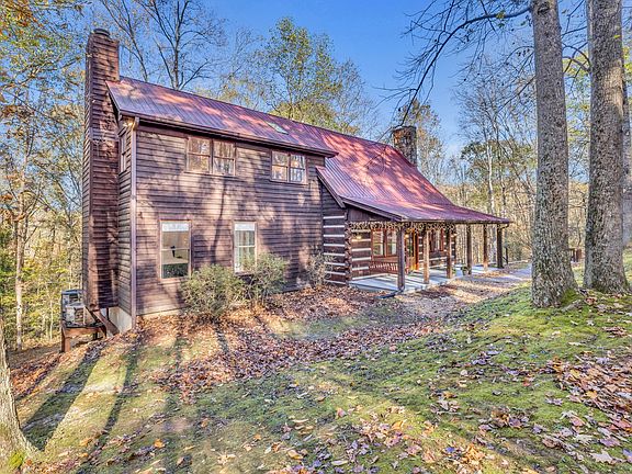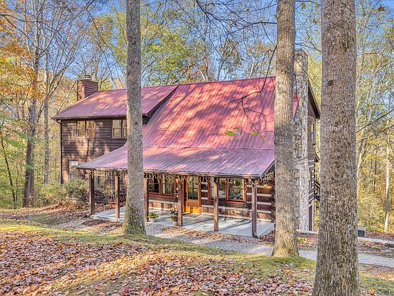 A Gatlinburg-esque dream retreat on 11+ wooded acres, this beautifully renovated log cabin offers the utmost in privacy and tranquility. Surrounded by nothing but lush trees as far as the eye can see, you'll find your own slice of paradise just 25 mins from downtown Nashville! Featuring a 2.5-story cathedral ceiling adorned with rustic wood beams, tongue and groove pine, stunning red oak floor downstairs and stained pine floor upstairs. Soak in the serenity from the screened porch perched high above the trees, or from the stone back deck with lower level fire pit crafted from reclaimed bricks. Recent renovations include incredible primary bathroom with barn door, new front door, paint, fixtures, carpet, and french doors at the upstairs balcony. The massive basement includes a garage as well as an additional area suitable for a workshop, storage, or future expansion. Would make a great short term vacation rental, no STR restrictions! Qualifies for USDA loan. *Open Sunday 11/12, 2-4 pm*