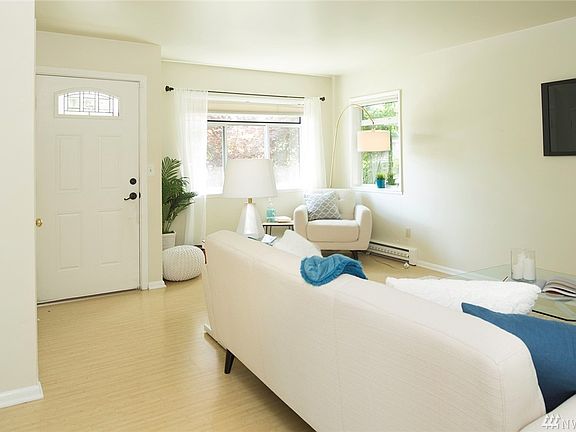 Wonderful curb appeal on friendly & quiet street, steps to Greenwood Park. Spacious & light-filled rooms include dining room addition w/ exposed beam ceiling that opens to a large deck. Level backyard adorned w/ fruit trees, seasonal flowers and bamboo for privacy. 2 large bedrooms plus a 3rd bedroom with en-suite. New Kitchen w/ granite counter tops, SS appliances & counter dining. Attached garage w/ workbench+cabinet= great storage. Walk Score of 85, easy access to I-5, Hwy 99 & Transit.