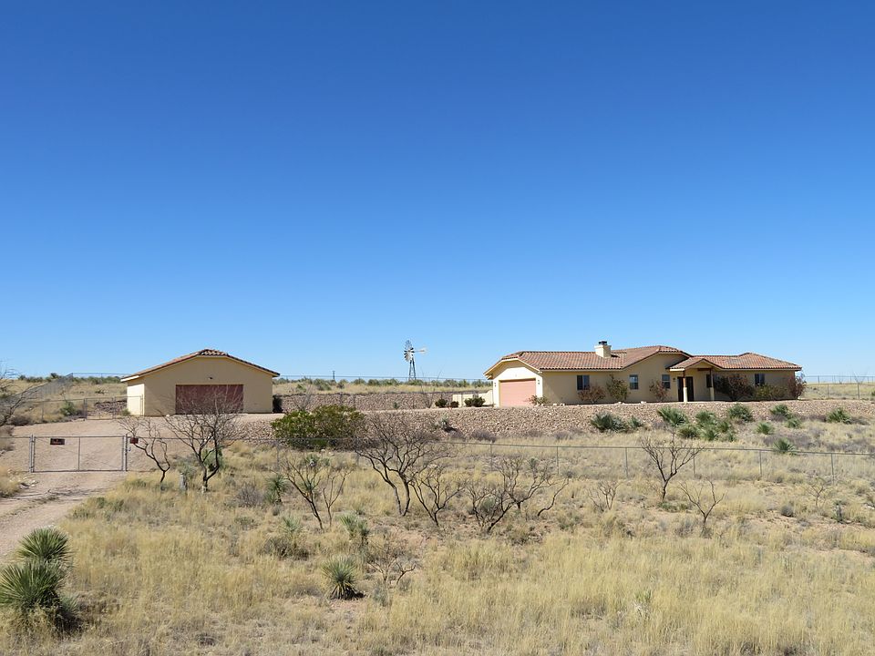 Tuscan Style Custom Casa located on 8.19 Acre parcel with Spectacular Mountain views! Generous sized 4 Bedroom 2 Bath. Great Room with fireplace, spacious open floor plan, Large kitchen with hardwood Cabinetry. 2 Car Garage plus Detached 750 Sq. Ft. workshop/Garage. Fenced and crossed Fenced perfect for pets. Stucco walled Courtyard with multiple covered patio spaces, Private patio off Master-bedroom is hot-tub ready. Raised garden bed, roses and Native Ocotillo /desert plants surround this lovely home. Quick easy commute to Tucson, One of a kind views of a old Windmill, Privacy plus! Hurry to view this wonderful dream home!
