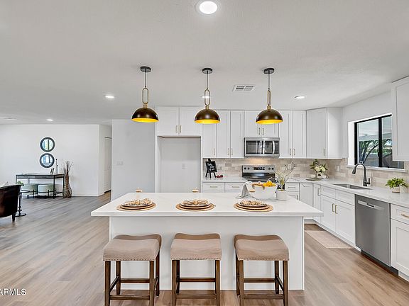 Look no further! This beautifully renovated 4 bed, 2 bath residence in Villa Hacienda is the one for you! Freshly painted inside & out, not to mention a low-care front yard w/artificial turf plus 2 carport parking spaces. Discover a spacious open floor plan w/new vinyl flooring & modern light fixtures, as well as a large dining room to delight your guests with. The kitchen is equipped w/new white cabinetry, marble counters, and brand new stainless steel appliances.. Cozy bedrooms w/ new carpet promises you and your loved ones a good night's sleep! Also including a lovely backyard with a sparkling blue swimming pool perfect for the warm summer days, this home is ready for you to make it yours.