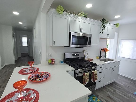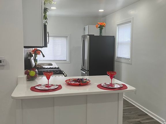 3 bedroom open ranch style home with several appealing features. The house has been renovated inside and out, ensuring a fresh and modern look. New Cabinets and Countertops: The kitchen features updated cabinets and beautiful countertops, enhancing both aesthetics and functionality. The kitchen boasts brand-new appliances, and bar area for eating or entertaining. New upgraded bathroom that gives you the spa like feeling. New Carpet throughout bedrooms feels very refreshing. Open living room with new wood laminated grey flooring. Yes there is a laundry room. New central air conditioning, for these hot sticky months. New roof, doors, windows and siding. Large Backyard: Enjoy outdoor activities, gardening, or simply relaxing in your spacious backyard. Yard is big enough to add a garage. If this is what your looking for schedule your appointment today.