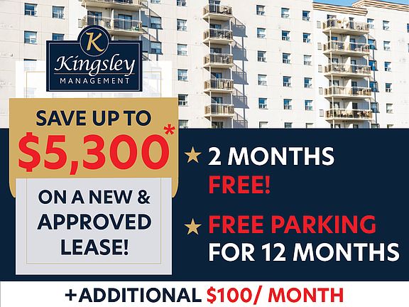 - Special offer! Limited Time Offer: 2 Months Free, Free Parking for 12 Months and an Additional $100/ Month Rent Credit for 12 Months for New & Approved Leases! - *Conditions apply. Available while supplies last. Offer valid on select units for new and approved leases only. Parking options are based on availability.