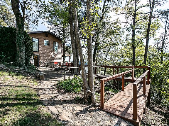 Nestled on the shores of Herrington Lake, this charming lakefront home is filled with memories and waiting for its next chapter. Perched above a scenic curve in the lake, the property boasts stunning panoramic views. Whether you choose to unwind on one of the many decks or watch the activity at the well-loved Waterfall Climb below, relaxation is guaranteed. After a day of lake fun, return to the cozy comfort of this home, where breathtaking sunsets and peaceful mornings await. Don't miss out! Recent upgrades include stairs leading directly to the lake with a sun deck, a newly added third bedroom and second bathroom, new windows, updated light fixtures in the dining area and kitchen, and a new ceiling fan in the living room.