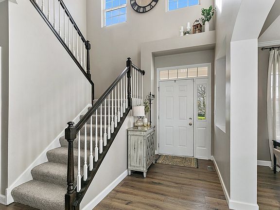 **MULTIPLE OFFERS RECEIVED**. HIGHEST AND BEST DUE BY NOON ON THURS, APRIL 11. Embrace the allure of this sprawling Aspen model nestled on a premium lot in Columbine Square! As you step into the spacious foyer, you will immediately feel "at home". Sunlight streams in through multiple windows, illuminating the open floor plan, ideal for seamless entertaining! The updated kitchen and expanded family room provide the ideal space for loved ones to gather and connect. Step outside through the sliders and enjoy summer evenings on the patio, overlooking the expansive yard and open space beyond. Spend leisurely afternoons on the porch, watching the kids play in the soon-to-be-completed park across the street. The finished basement extends the living space, perfect for family gatherings or accommodating out-of-town guests, featuring a generous recreation area, a 4th bedroom, and a full bath. Additionally, a home office provides a quiet sanctuary for work, while the easily accessible crawl space offers ample storage. Updates include above-grade carpet, wood laminate, refrigerator, and dishwasher in 2023; HVAC, sump pump, basement carpet, and microwave in 2021.