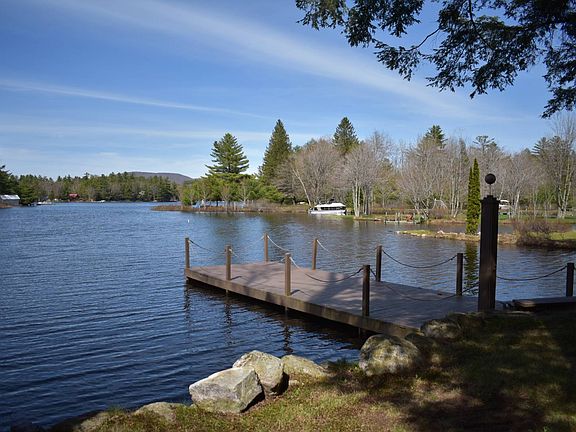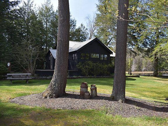 This is a Beautiful Property inside and out! Lovely level .57 Acre 165 feet of waterfront, nicely landscaped grounds. Soothing water sounds from the koi pond fountain, years of perennial gardens, it's very relaxing! Step inside this Beautiful home overlooking the waterfront and landscaped grounds! The south side deck is perfect for coffee or cocktails. Step inside and be wowed at waterfront views! The Open floor plan is perfect to enjoy the magnificent lake views. This a beautiful Adirondack style home with class. The kitchen is beautiful, stain glass window, custom cabinets, plenty of counter space and plenty of natural light! Big enamel sink and tile floors. Smooth top stove and SS refrigerator. The living room is spacious and easy to rearrange your furnishings as the seasons change. It's real easy looking out at the peaceful water views or the landscaped yard! There are 2 bedrooms plus a loft area. The master bedroom is on the second floor along with the loft area and a wall of closets. There is another bedroom on the first floor. The bath with tile floor also on main floor. The separate 'office' has electric and heat, currently a private bedroom, just steps from the house it's perfect for guests. Everything is well maintained, this is move in ready. Private Septic, Well and Propane heat. There is a huge 3 car garage with a workshop and extra space above for more living or storage area. There is plenty of storage in the out buildings for tools, lawn mower etc. Taxes approx: $3,000/Year