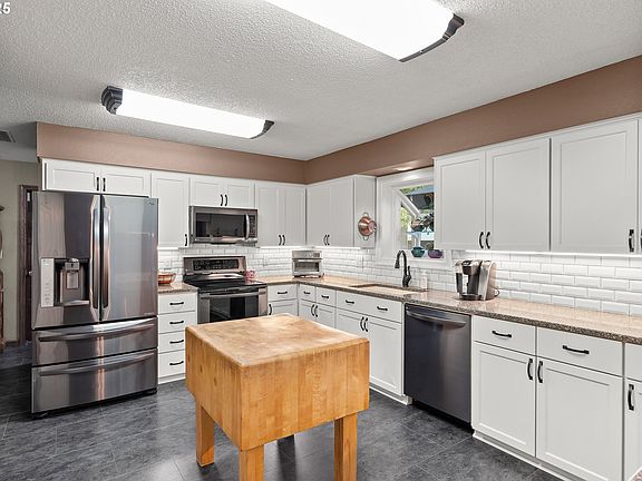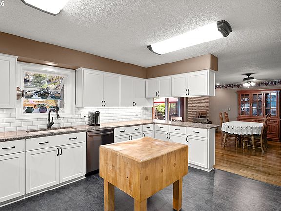 This immaculate ranch-style home offers fantastic outdoor living space, including a partially covered deck that enjoys wonderful natural light. The top deck composite was replaced just 3 years ago. The remodeled kitchen includes slab granite, full-height backsplash, undermount sink, custom cabinets, butcher block island, and stainless steel appliances. You'll also appreciate the LeafGuard gutters with a transferable lifetime warranty and a roof that is currently being reconditioned with a 5-year transferable warranty. Located in a quiet neighborhood in wine country, this home provides easy access to Salem, PDX, and the coast. The split bedroom layout offers privacy, with bedrooms situated on either side of the home, and a remodeled primary bathroom. Key updates include a kitchen remodel in 2017, window replacements in 2007, and fresh exterior paint completed in April 2025. Inside, you'll find new flooring and carpet in two bedrooms and a bathroom (installed in 2017). The crawlspace was also recently addressed in May 2025 with a new vapor barrier and wrapped pipes.