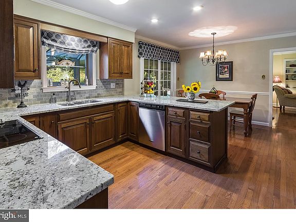 Amazing home in the much sought-after neighborhood- Stanwick Glen! Meticulously maintained home on a quiet dead end street within walking distance to Moorestown's Blue Ribbon Middle and High School, all sports fields, track and walking paths. The backyard includes a completely renovated heated pool and spacious outdoor living. Enjoy 3 seasons under the large covered paver patio overlooking the private setting and gardens. There is also a pool house with separate changing areas. The updated kitchen includes a new granite countertop, stone backsplash, and stainless steel appliances with Wifi enabled remote technology. There are 4 spacious bedrooms on the second level with double closets. The 3 redesigned baths include Kohler fixtures and neutral tones. The luxurious master bath features a walk in Travertine stone shower, air bubble spa tub, and marble vanity plus plenty of storage. The partially finished basement accommodates multiple game tables, dry bar and a large seating area. The home office is located on the main floor making working from home convenient and can also be used as an additional bedroom or flex space. The family room features a gas fireplace with stone surround and custom mantle. Hardwood floors and custom moldings continue throughout the home. The circular driveway and two car garage provides easy parking for all of your guests. Other features of this home include newer roof and leaf-guard gutters, The 2 zoned high efficiency HVAC with added electronic air filter system as well as attic insulation were all completed in 2012. Walk to town from this charming home on a quiet street in the perfect neighborhood-- truly a rare find!