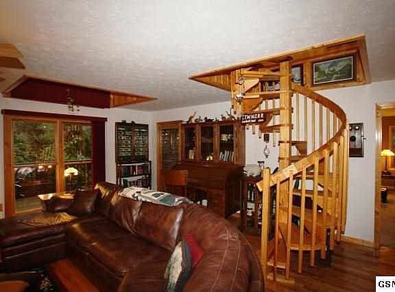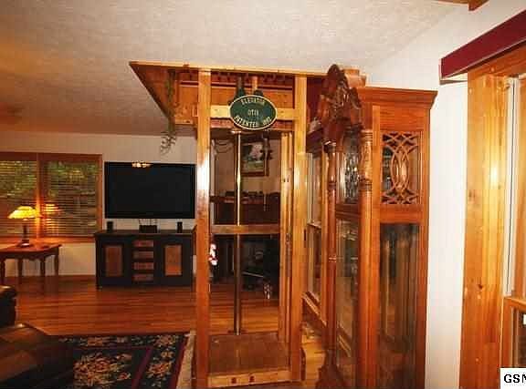 One of the most unique homes I have had the privilege of selling. This cabin is nestled in the woods with 3 lots. This home has 3 bedroom 3.5 baths with a bonus suite in the basement and a loft area upstairs. On the main floor there is a large Kitchen / Dinning room area with hardwood floors. In the living room it is open with a gas fireplace with hand carved mantel. The elevator comes down from the second floor into the living room area. The master bedroom sits off from the living room. In the master bedroom there is another gas fireplace with another beautiful hand hewn mantel. The sauna sits right outside the master on the deck. On the second floor you will find the 2nd and 3rd bedroom with an additional bath,plus an entertainment area complete with games and a wet bar. The owner is a collector of trains and has a 7.5 scale train with a tracks on the 2 adjoining lots. Around the tracks is your own private hiking trail, with an outdoor cooking area and workshops. The trains can be bought separately. This is truly a unique property that pictures cannot do justice. Call for your private showing today!!!! Brokered And Advertised By: MARTY LOVEDAY & ASSOC. RE & AUCTION Listing Agent: MARTY LOVEDAY