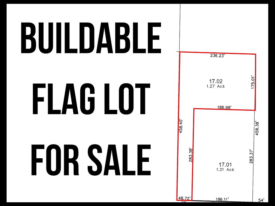 Build your own private home tucked away on this rare build-able flag lot with a long driveway entrance off of Stagecoach Rd. close to businesses and shore access points.