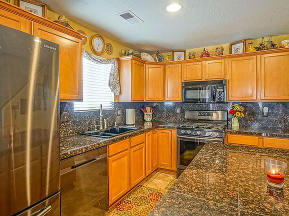 Welcome home to Northern Meadows! Sought after DR Horton 'Panther' floor plan has been fully upgraded and is move in ready! Everything is done: new cooler, cozy gas fireplace, and upgraded granite kitchen with stainless steel appliances. Spacious 2 story floor plan is perfect for easy living! Formal living-dining area boasts soaring ceilings and tile floors. Ample kitchen opens onto breakfast nook and huge family room! Upstairs you will find a flexible loft space, 2 more bedrooms and a true master suite with garden soaking tub and endless closet! A huge covered patio opens onto your fully walled and landscaped backyard with firepit, pavers and sprinkler system. Solar panels mean low electric bill! Seller will offer $1500 credit for carpet and $200 for glass! Meet your new home!