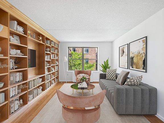Garbage disposalCommon roof-deckLaundry roomBreakfast islandThree double closetsHigh-end appliancesBuilt-in wall of bookshelves