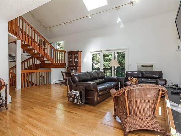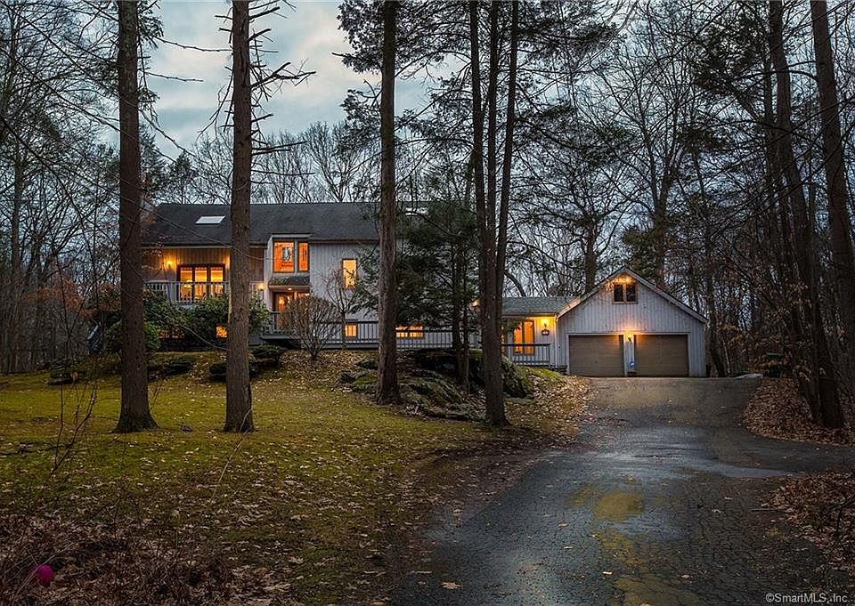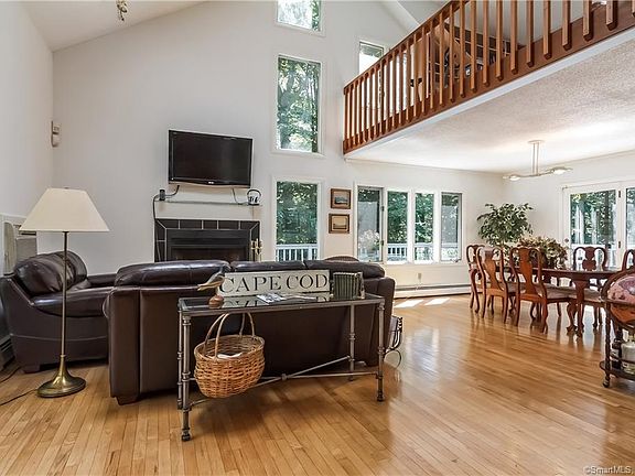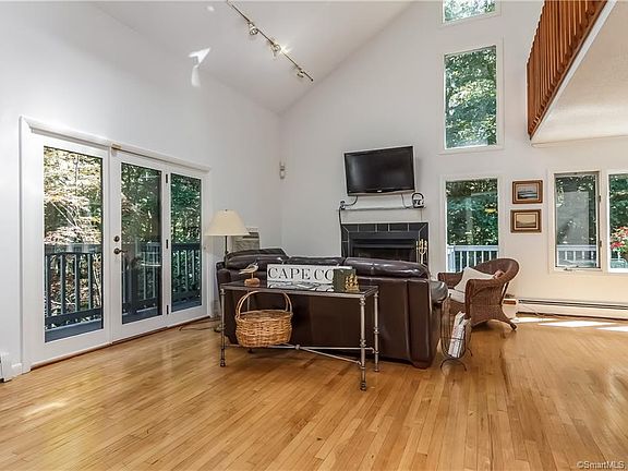 Experience the serene setting this home offers at this one-of-a-kind tri-level contemporary, located within a small enclave of homes off W. Lake Ave., yet only minutes from the Guilford town green. This 4 bedroom, 3 full bath home features flowing spaces, wide open staircases and an abundance of natural light through large windows and skylights. The spacious living/dining room offers soaring vaulted ceilings, fireplace and sliders leading to an expansive wrap-around deck overlooking an in-ground pool and private backyard. The kitchen with an eat-in area, offers a light & bright space for meal preparation. Two bedrooms and a full bath are also found on the main level. The master bedroom suite with a full bath and walk-in closet is on the upper level. The loft provides a great space for an office, sitting room or den. A completely finished lower level walk out offers a 4th bedroom, family room with a fireplace, mudroom and an additional room with a second walk out which provides a versatile floor-plan - - perfect for multi-generational living or potential for an in-law apartment. Storage space can be found over the 2-car garage and includes a separate entry. Summertime entertaining is a breeze with an in-ground pool & hot tub. Property abuts Conservation Land affording privacy. Conveniently located, close to shopping, restaurants and major routes, including I-95. You'll love all that this shoreline town offers, including an award-winning school system and brand new high school. No association - homeowners split cost of snow plowing